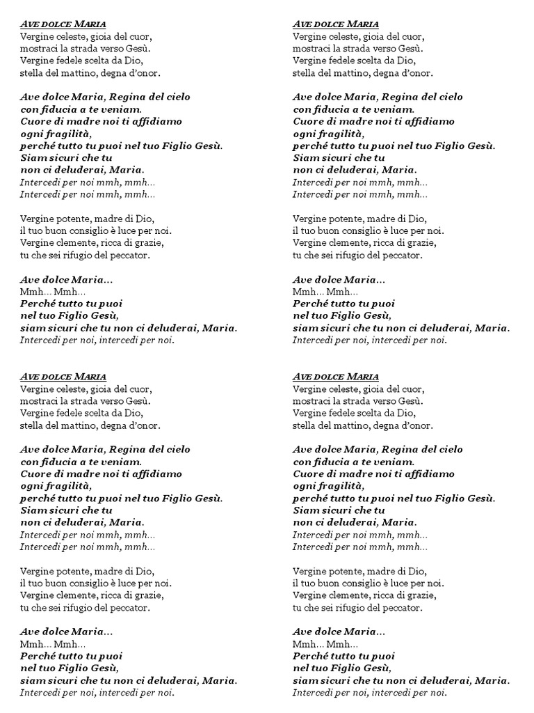 Ave dolce Maria, Regina del cielo Ave dolce Maria, Regina del cielo