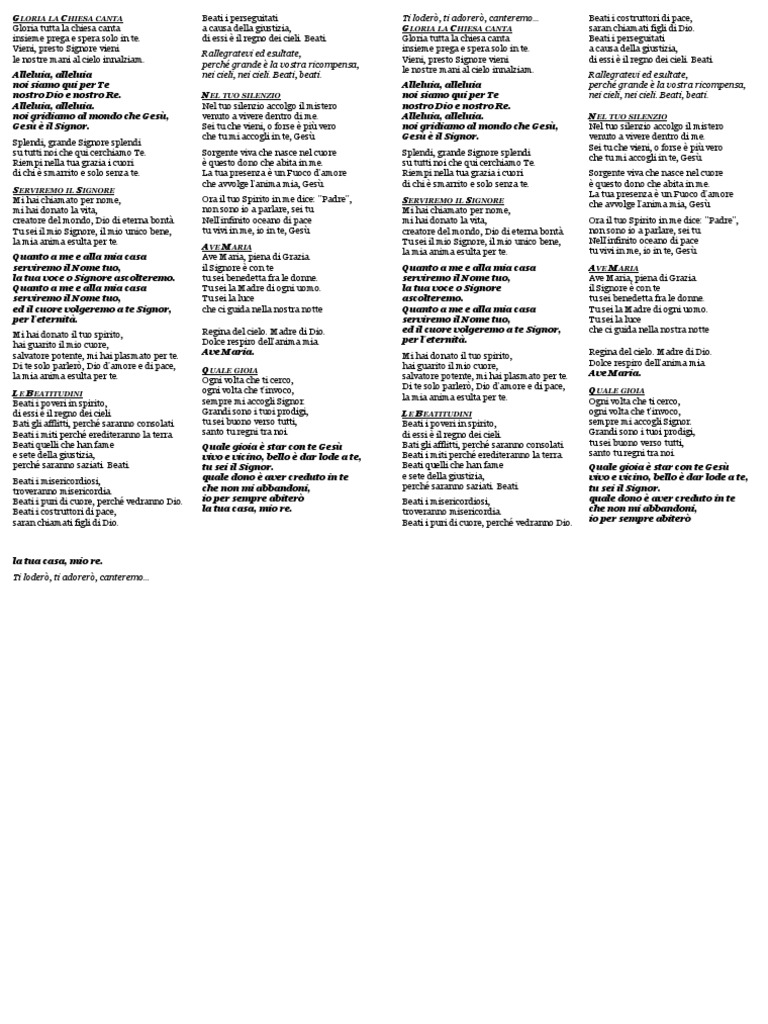 Beati i miti perché erediteranno la terra. santo tu regni tra noi. di essi è il regno dei cieli. Grandi sono i tuoi prodigi,