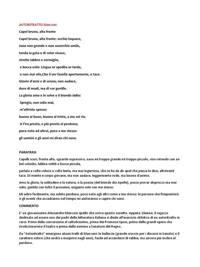 Da "Autoritratto" emergono alcuni tratti di Manzoni: la balbuzie (grande cruccio per i discorsi in Senato) e il