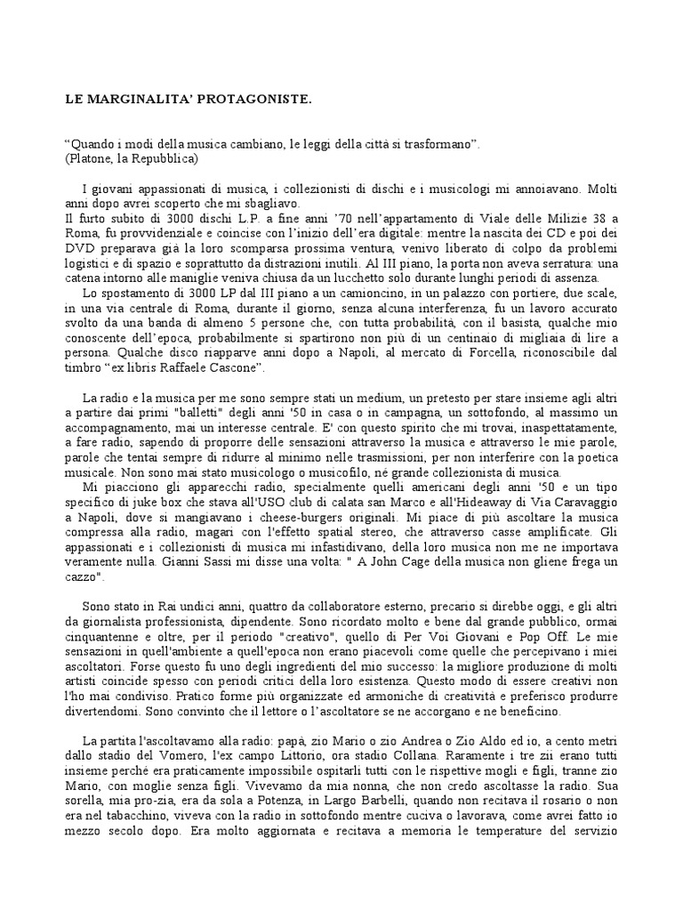 musicale. Non sono mai stato musicologo o musicofilo, né grande collezionista di musica.