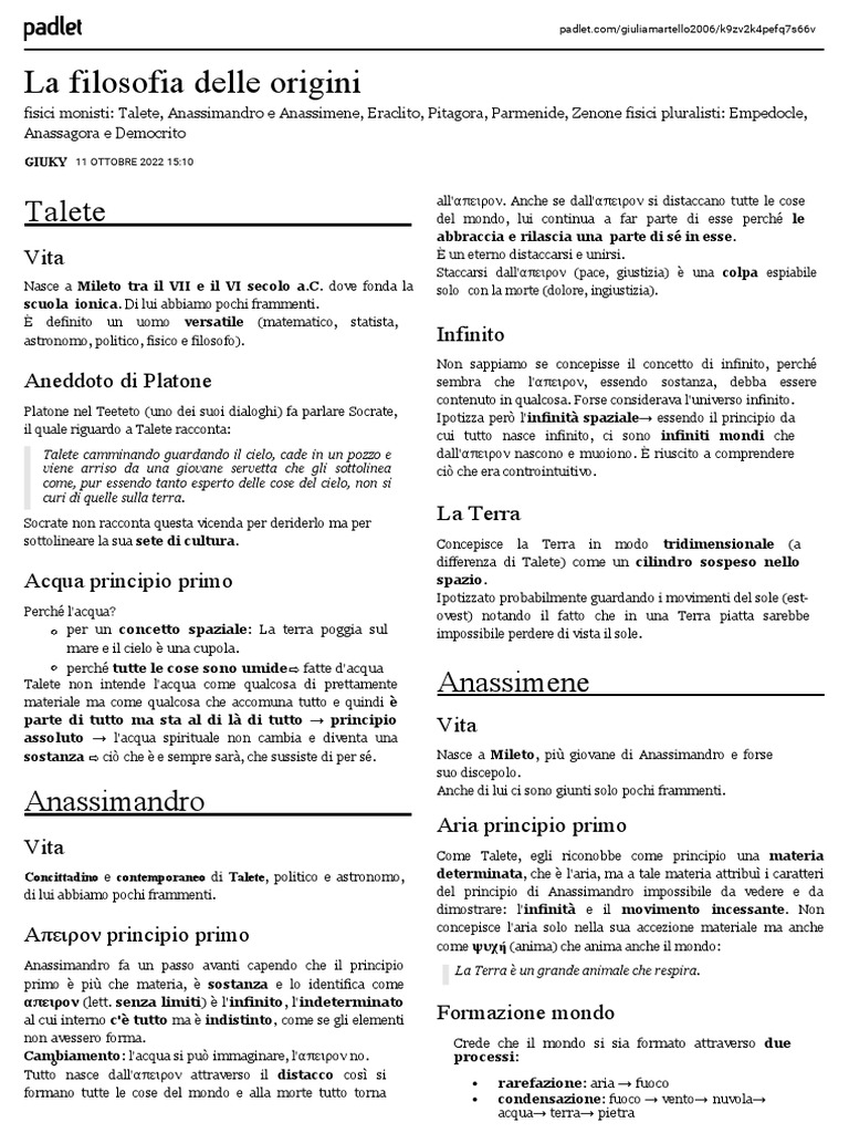 Talete camminando guardando il cielo, cade in un pozzo e dall'απειρον nascono e muoiono. È riuscito a comprendere
