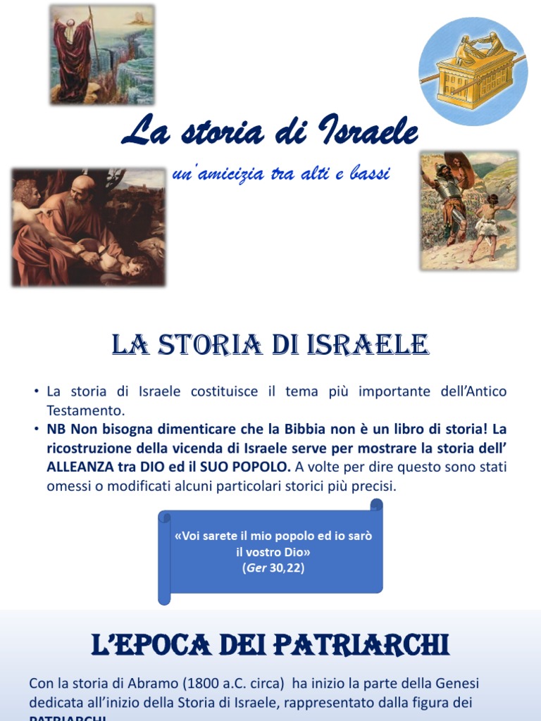• La storia di Israele costituisce il tema più importante dell’Antico