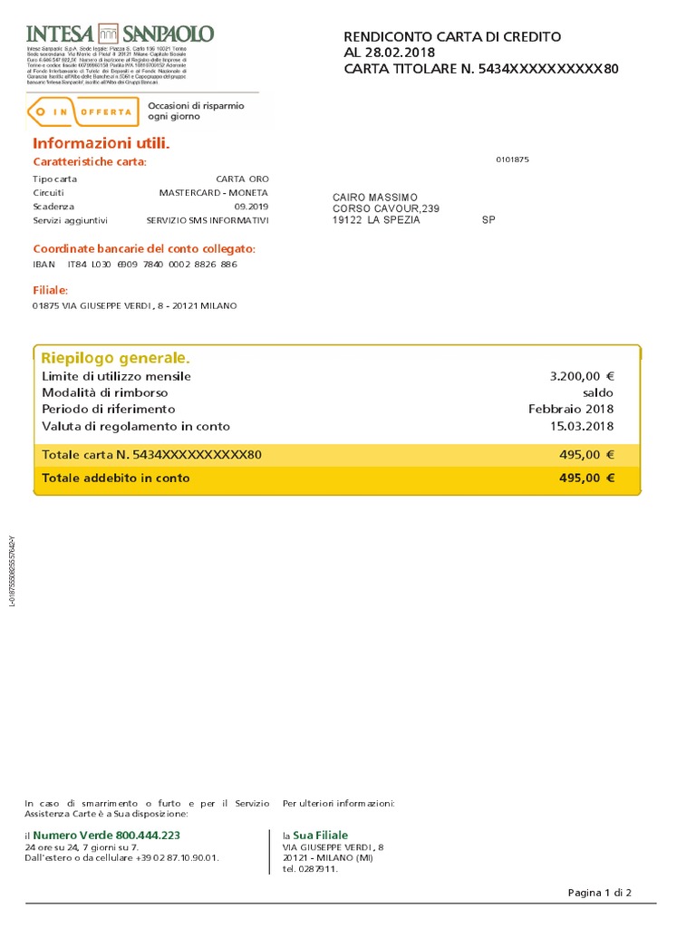 CARTA TITOLARE N. 5434XXXXXXXXXX80