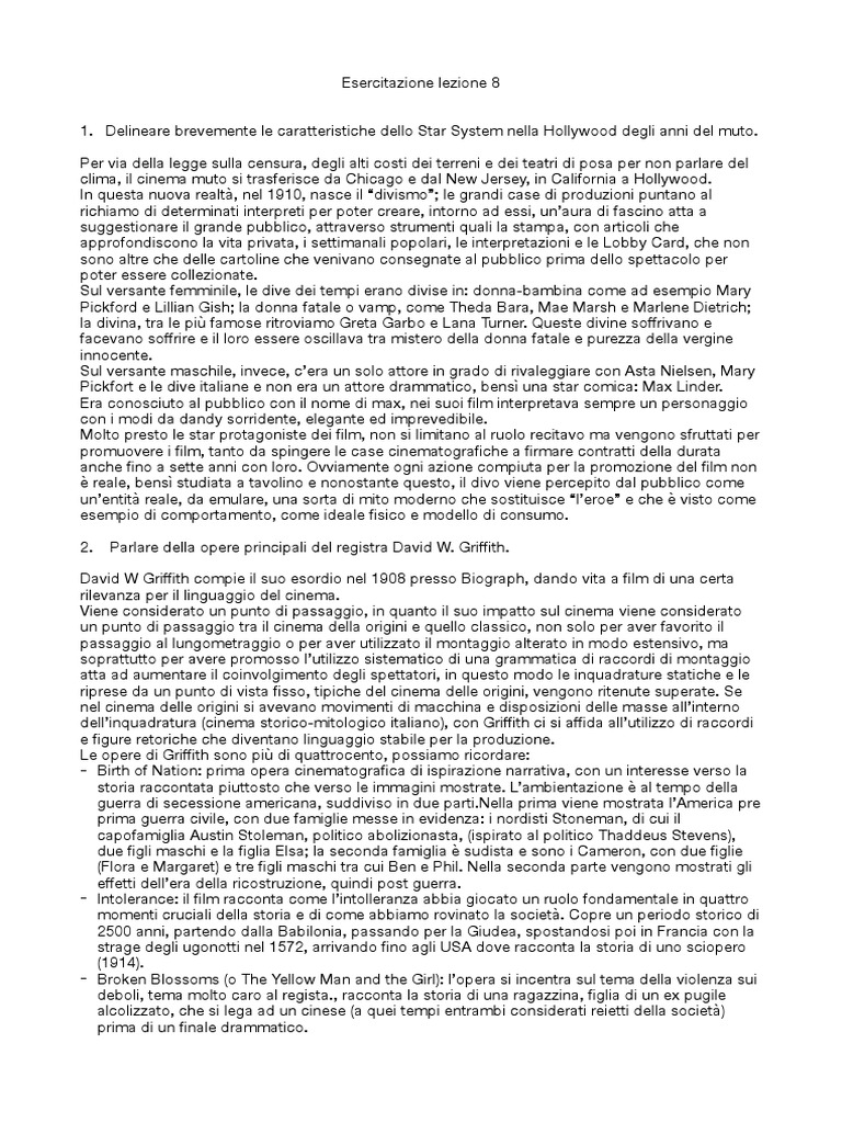 1. Delineare brevemente le caratteristiche dello Star System nella Hollywood degli anni del muto.