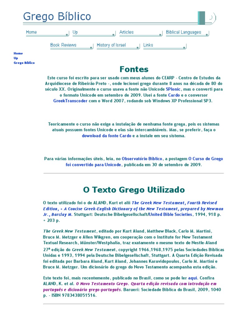 Para várias informações úteis, leia, no Observatório Bíblico, a postagem O Curso de Grego foi convertido para Unicode, publicada em 30 de setembro de 2009.