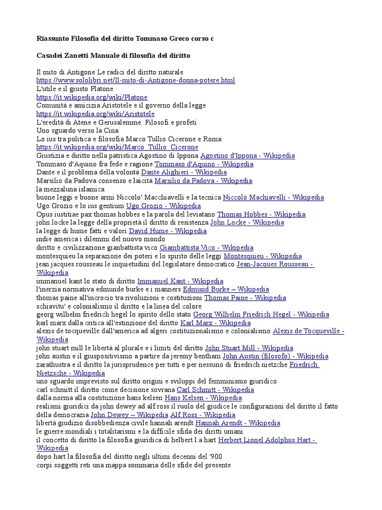 Riassunto Filosofia del diritto Tommaso Greco corso c
