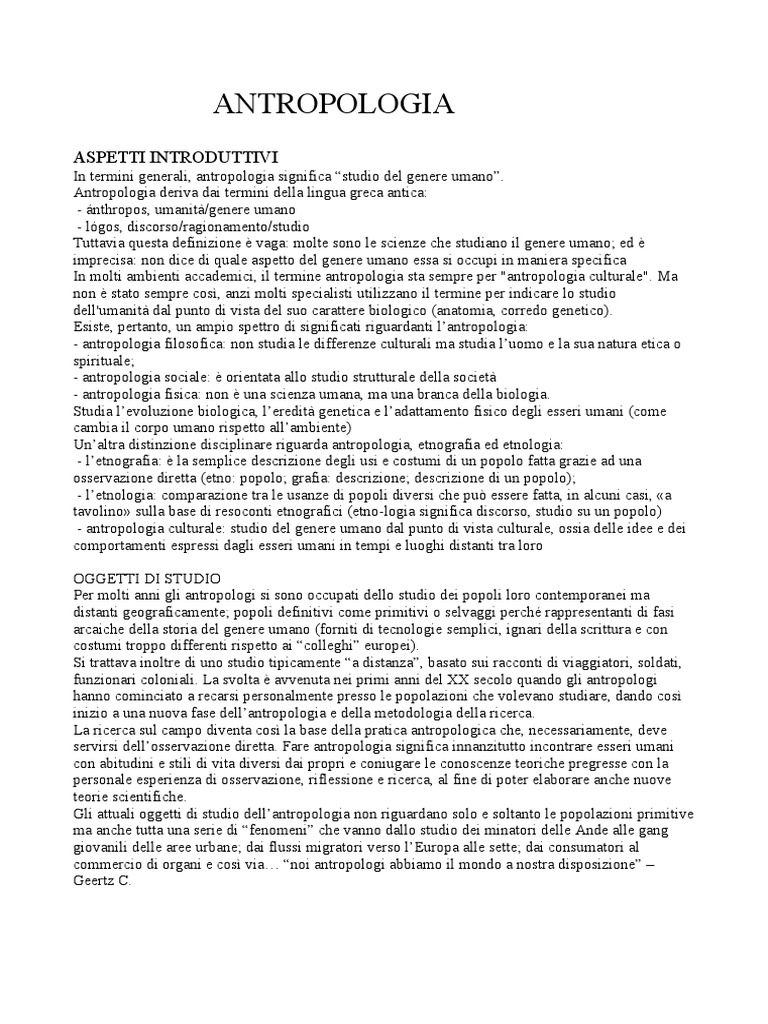 Esiste, pertanto, un ampio spettro di significati riguardanti l’antropologia: