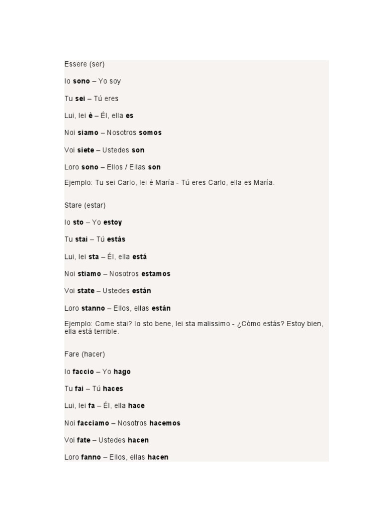 Ejemplo: Tu sei Carlo, lei è María - Tú eres Carlo, ella es María.