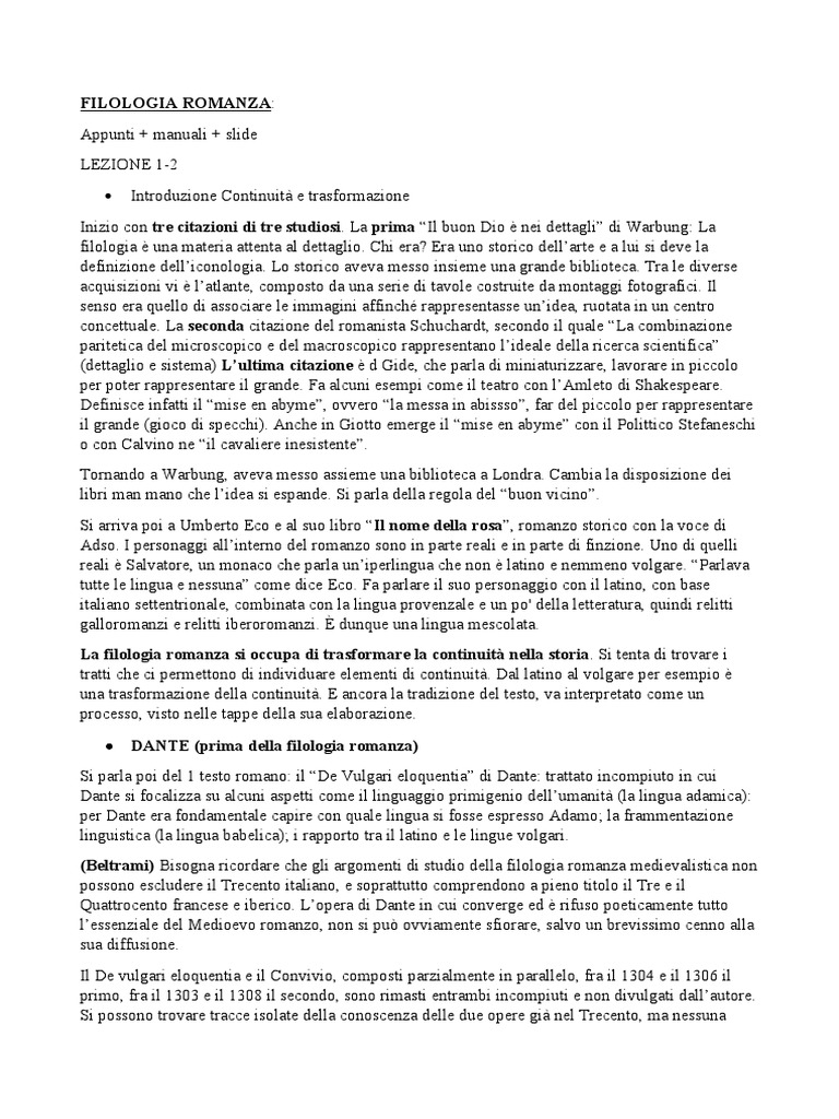 La filologia romanza si occupa di trasformare la continuità nella storia. Si tenta di trovare i