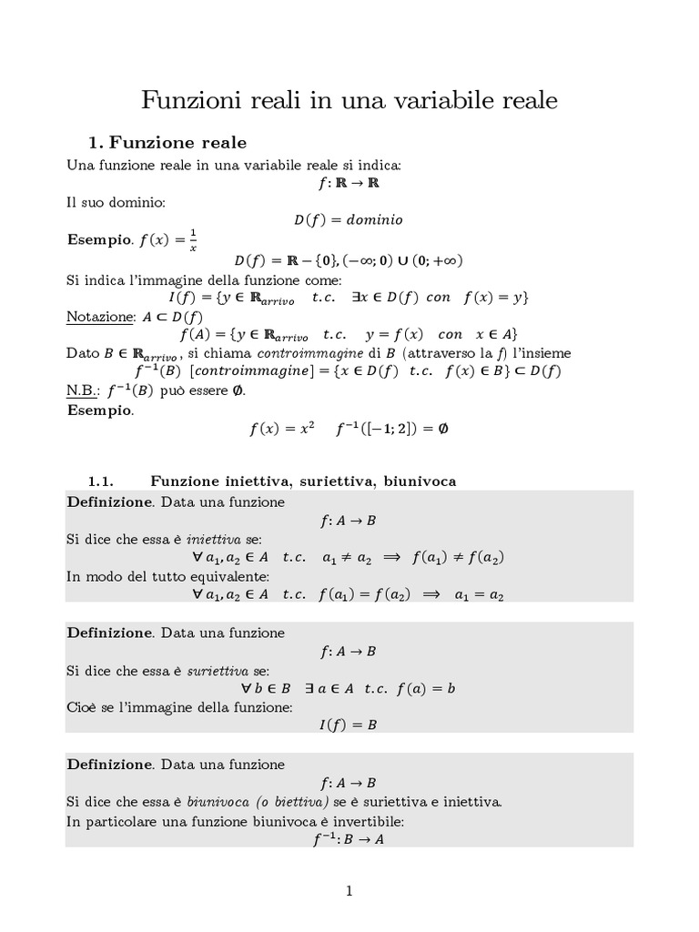 1.1. Funzione iniettiva, suriettiva, biunivoca