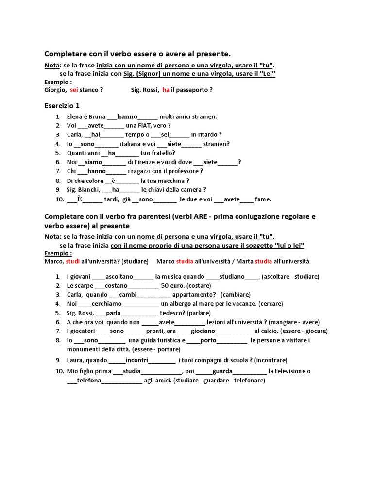 10. ___È______ tardi, già __sono_______ le due e voi ___avete____ fame.