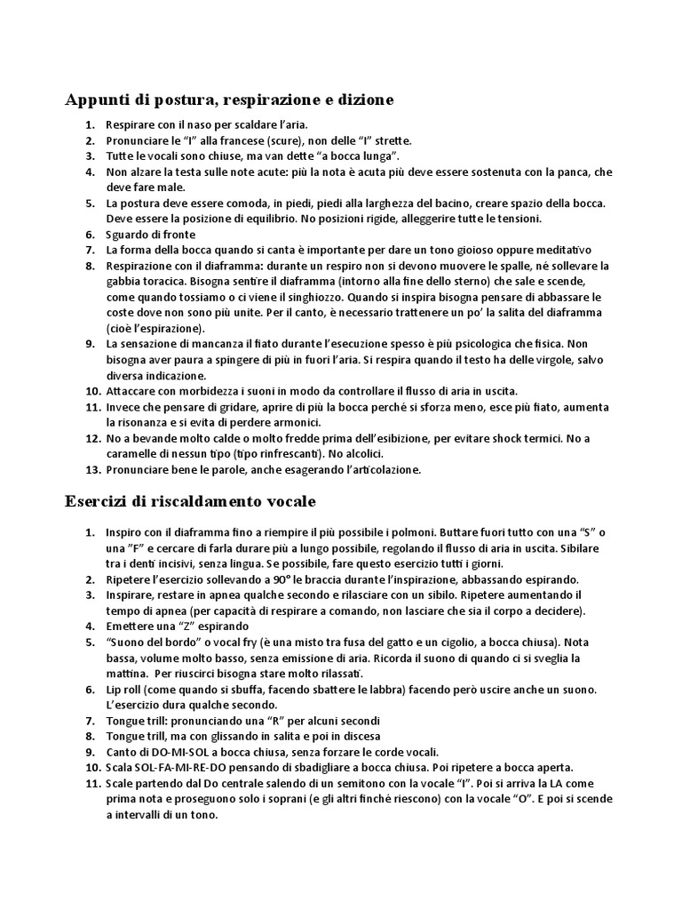 Appunti di postura, respirazione e dizione