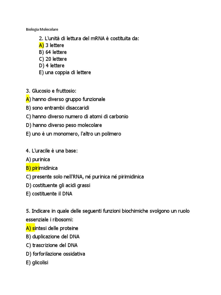 5. Indicare in quale delle seguenti funzioni biochimiche svolgono un ruolo