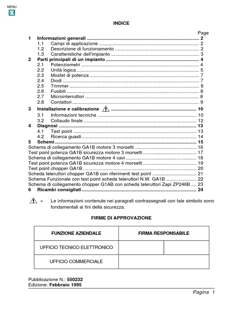 Schema di collegamento chopper G1AB con scheda teleruttori Zapi ZP246B .... 23