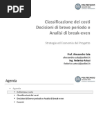 innovazione. Viene approfondito il tema dei costi, suddividendoli per natura, comportamento,