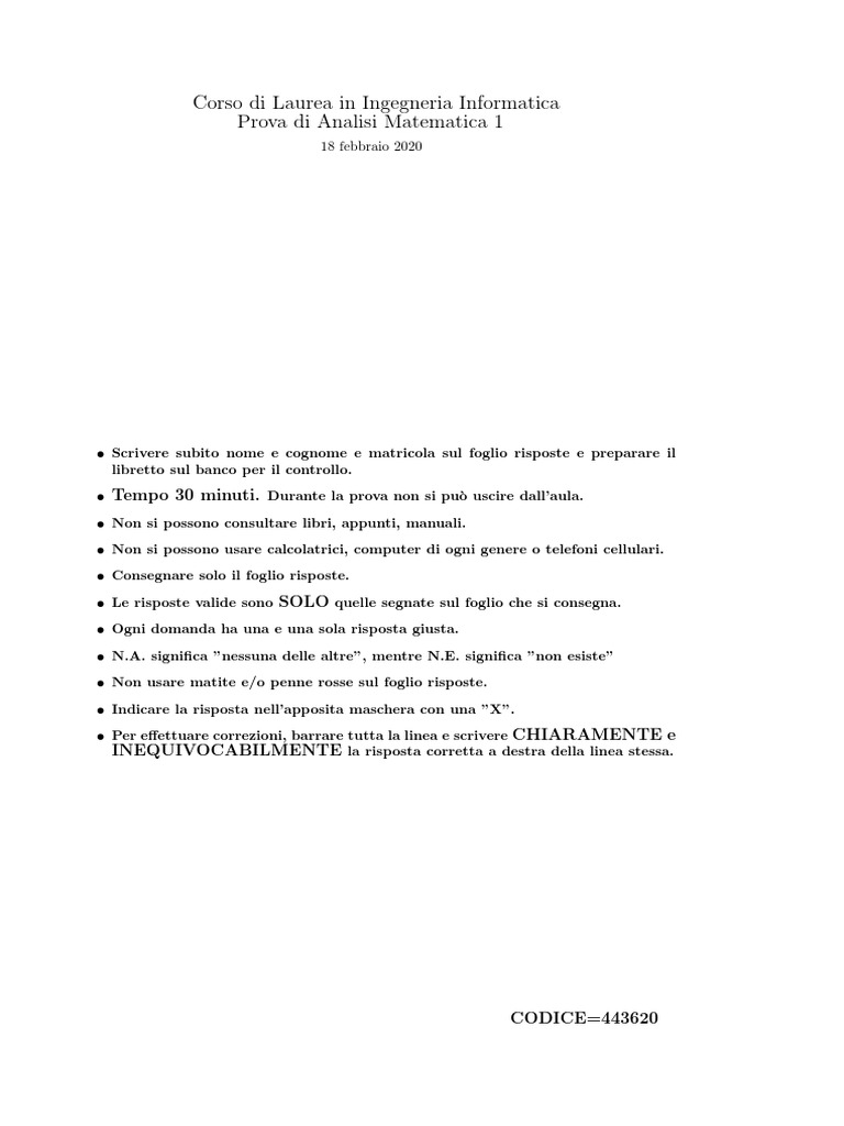 Prova di Analisi Matematica 1