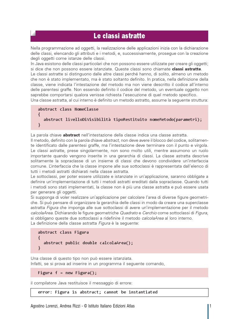 si dice che non possono essere istanziate. Queste classi sono chiamate classi astratte.