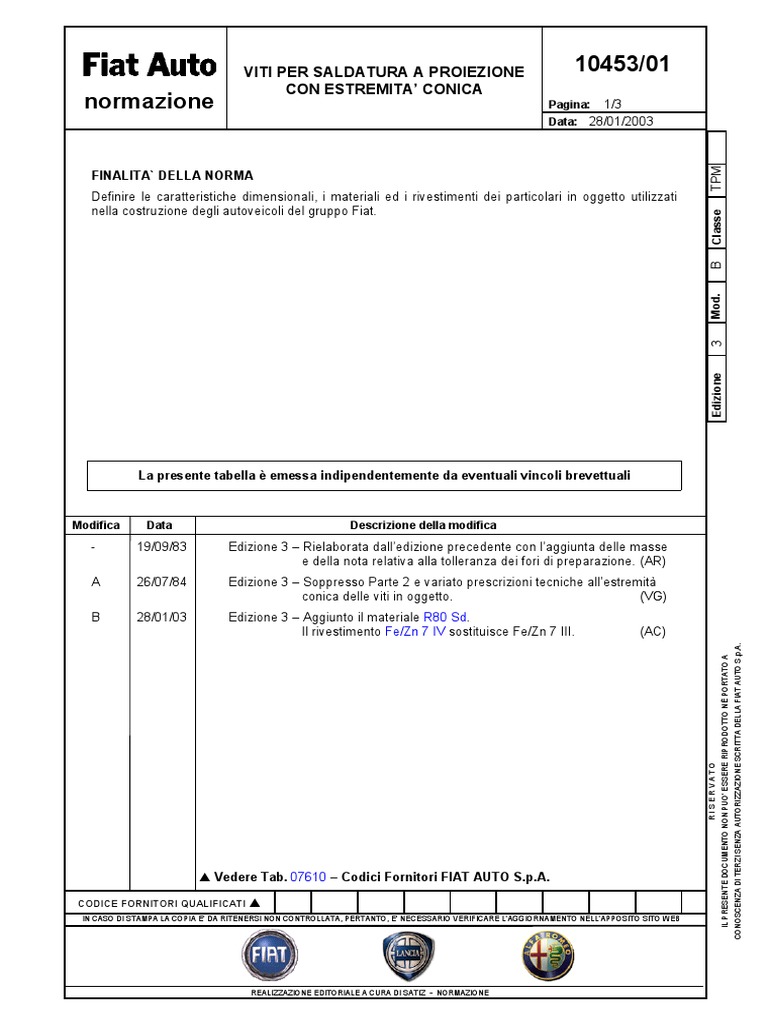 B 28/01/03 Edizione 3 – Aggiunto il materiale R80 Sd.