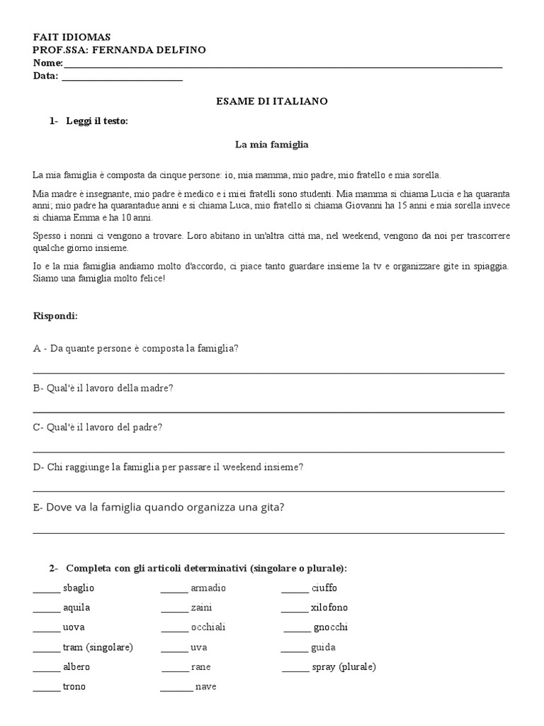 anni; mio padre ha quarantadue anni e si chiama Luca, mio fratello si chiama Giovanni ha 15 anni e mia sorella invece