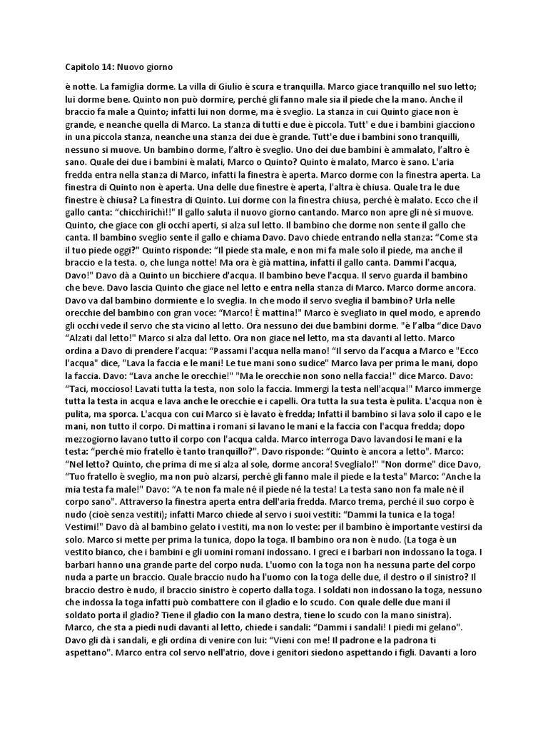 Marco". Marco va via dalla villa portando la mela, il libro, il quaderno, lo stilo e il righello. Il figlio che