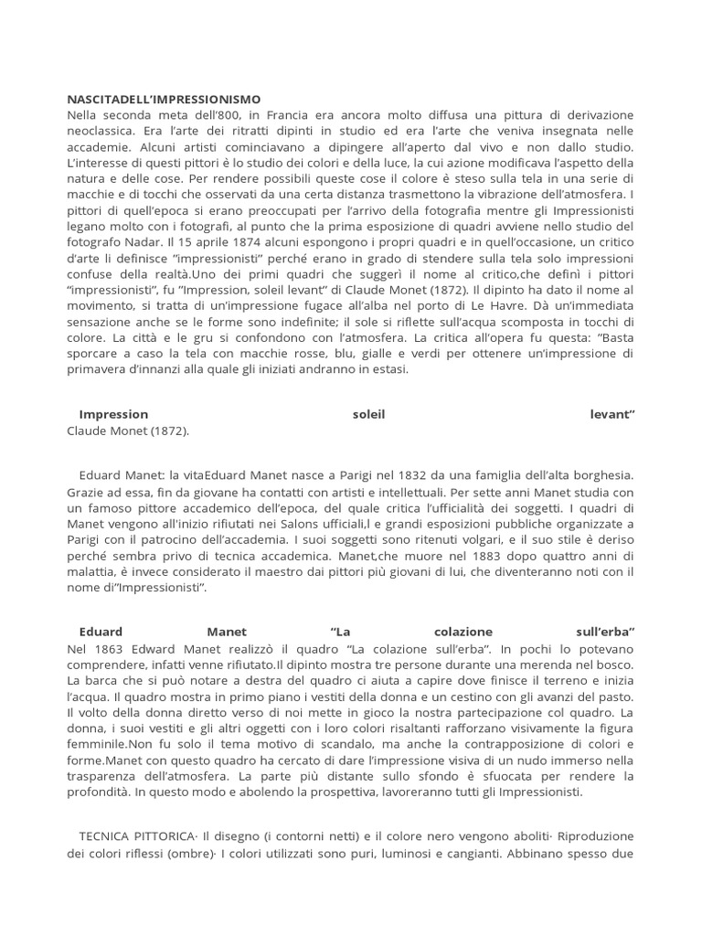 pioggia", “Lo Grenouillère"anche questo di Monet ed in fine “La colazione sull'erba" del 1863. Gli