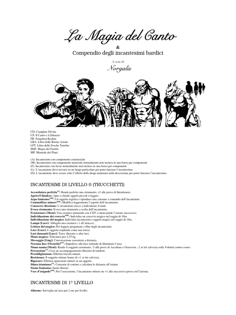 Compendio degli incantesimi bardici