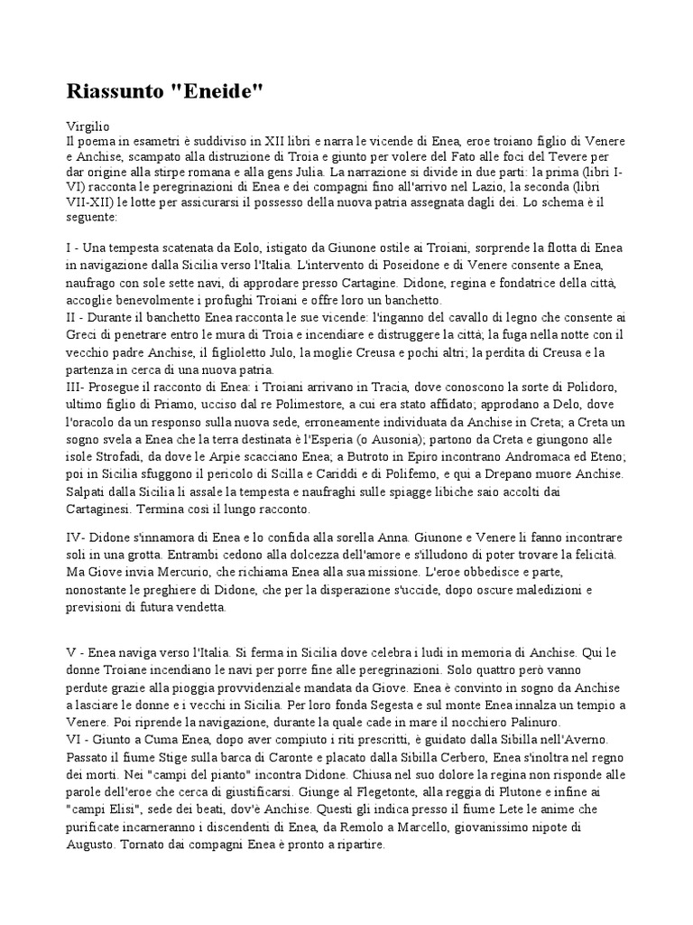 Il poema in esametri è suddiviso in XII libri e narra le vicende di Enea, eroe troiano figlio di Venere