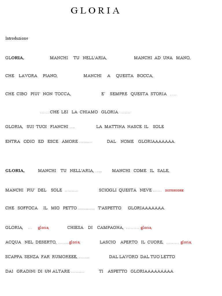 …….CHE LEI LA CHIAMO GLORIA. …….