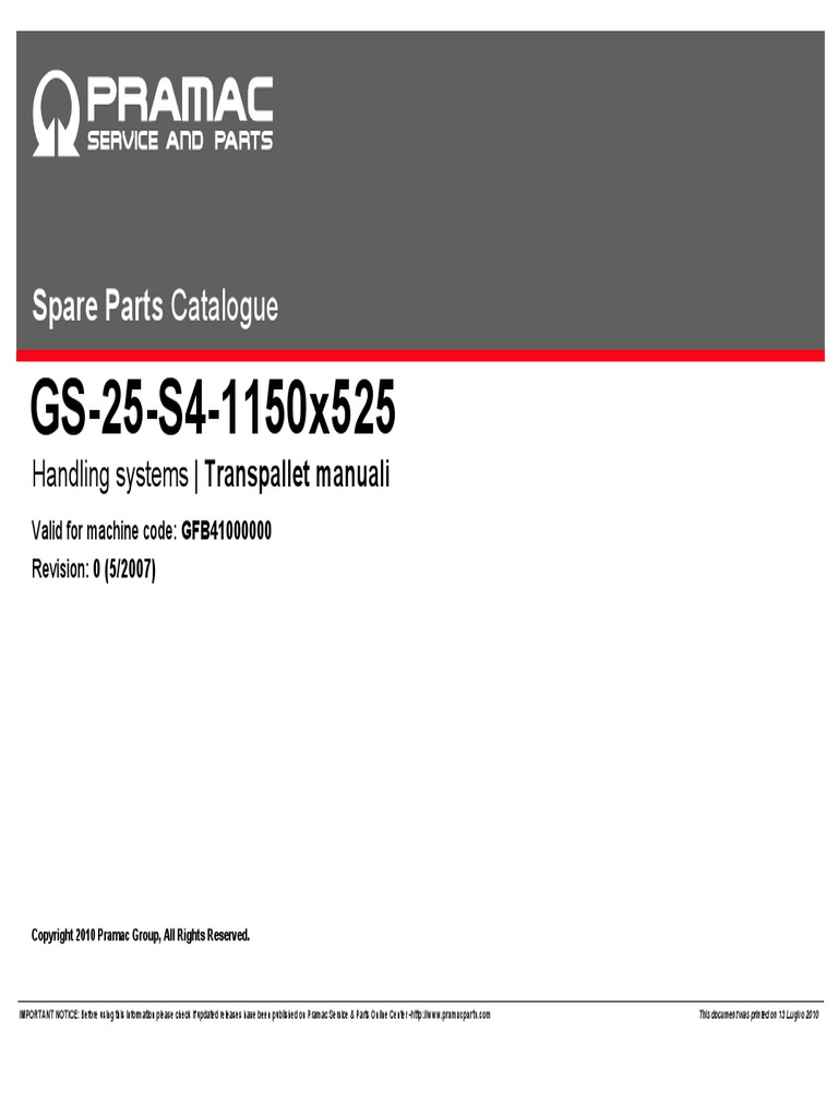 IMPORTANT NOTICE: Before using this information please check if updated releases have been published on Pramac Service & Parts Online Center - [Link] This document was printed on 13 Luglio 2010