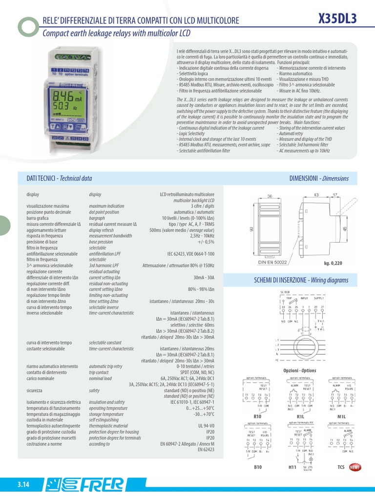 RELE’ DIFFERENZIALE DI TERRA COMPATTI CON LCD MULTICOLORE X35DL3