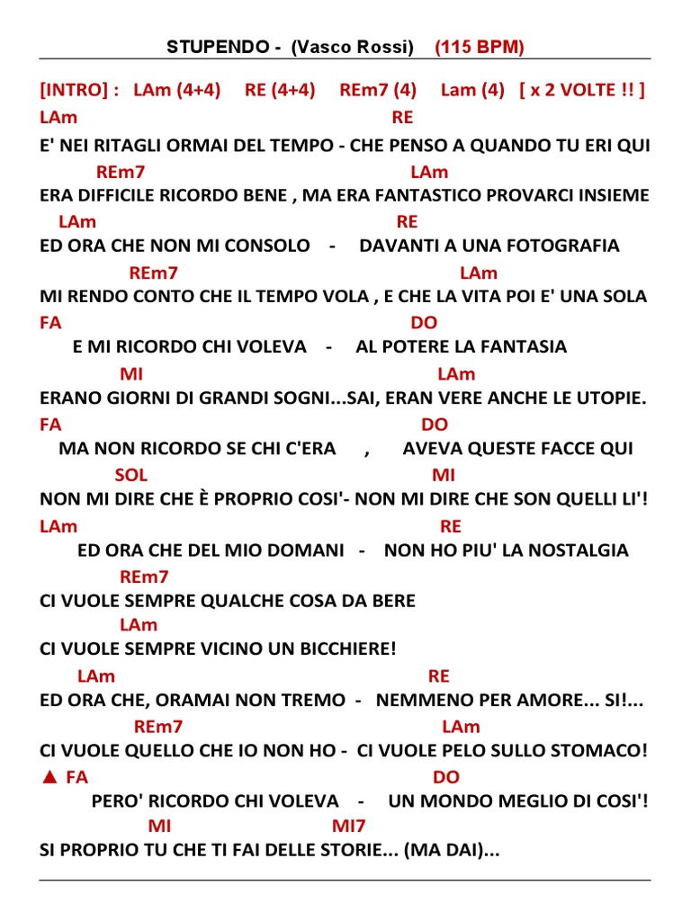 STUPENDO - (Vasco Rossi) (115 BPM)