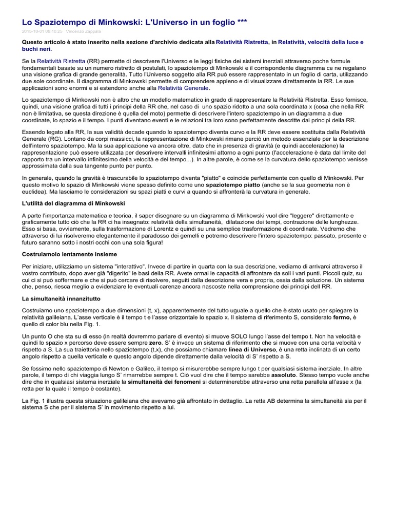 Generale (RG). Lontano da corpi massicci, la rappresentazione di Minkowski rimane perciò un metodo essenziale per la descrizione
