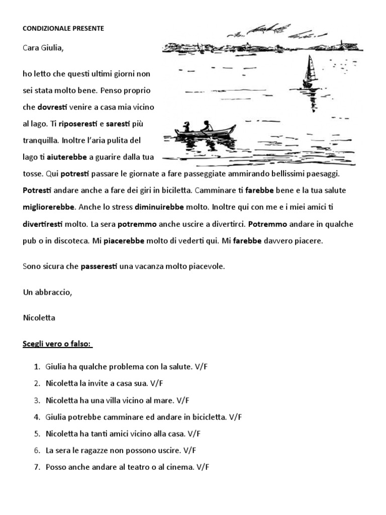 4. Giulia potrebbe camminare ed andare in bicicletta. V/F