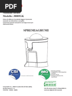 Questo elettrodomestico è adatto esclusivamente alla lavorazione di cibi in luoghi al chiuso e asciutti.