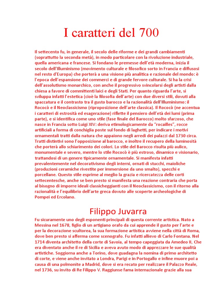 i caratteri di estrosità ed esagerazione) riflette il pensiero dell’età dei lumi (prima