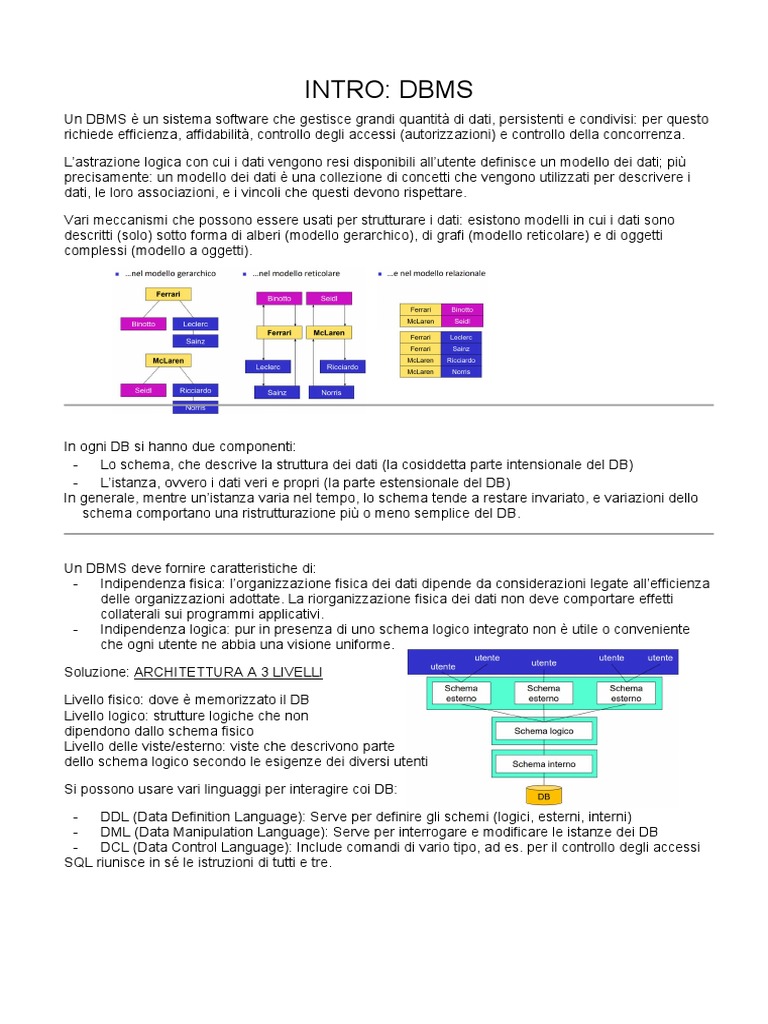 Un DBMS è un sistema software che gestisce grandi quantità di dati, persistenti e condivisi: per questo