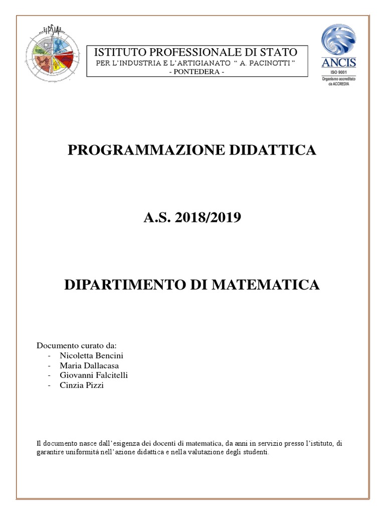 Il documento nasce dall’esigenza dei docenti di matematica, da anni in servizio presso l’istituto, di