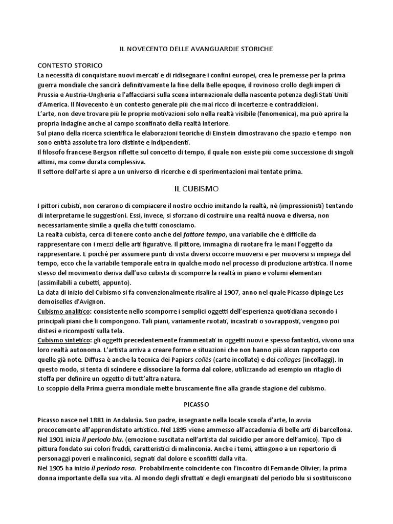 IL NOVECENTO DELLE AVANGUARDIE STORICHE