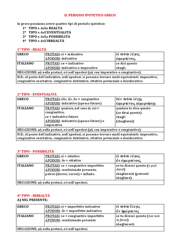 NEGAZIONE: μή nella protasi, οὐ nell'apodosi (μή con imperativo e congiuntivo).