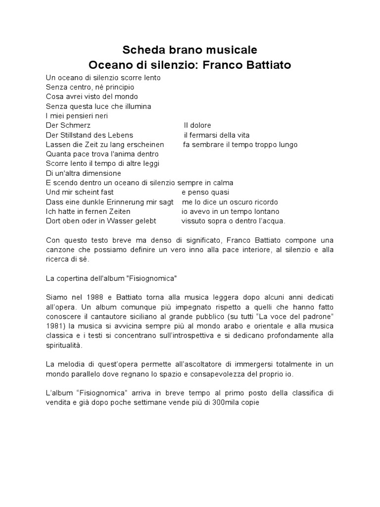 Con questo testo breve ma denso di significato, Franco Battiato compone una