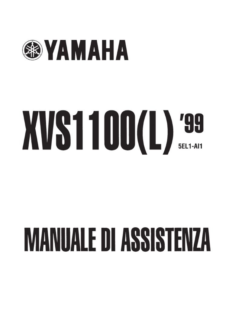 XVS1100 (L) MANUALE DI ASSISTENZA 1998 Yamaha Motor Co., Ltd. 1 Edizione ottobre 1998 Tutti i diritti riservati. Sono espressamente vietati la riproduzione o lutilizzo non autorizzato senza il previo consenso scritto di Yamaha Motor Co., Ltd.