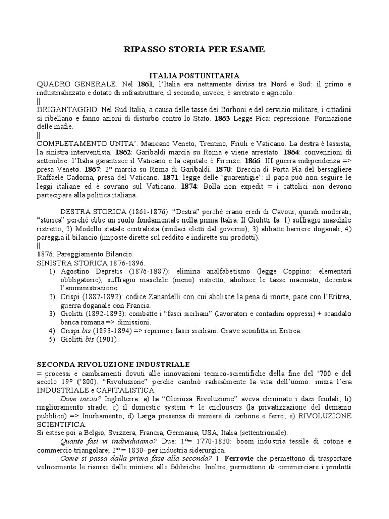 RIPASSO STORIA PER ESAME