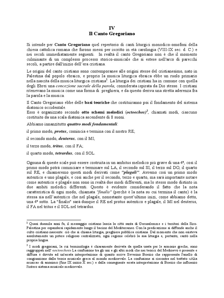 Si intende per Canto Gregoriano quel repertorio di canti liturgici monodico-omofoni della