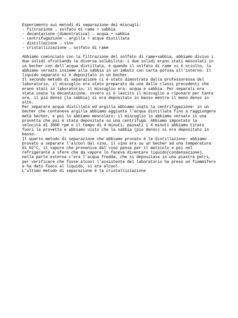 Il secondo metodo di separazione ci è stato dimostrato dalla professoressa del