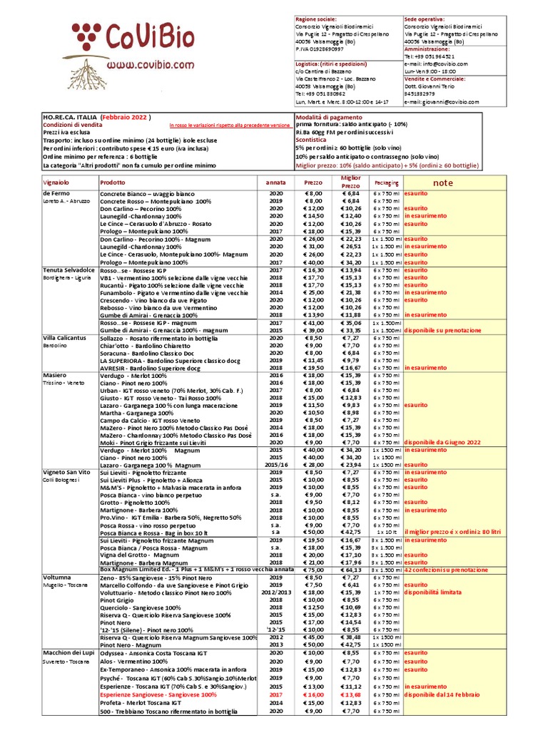 Ordine minimo per referenza : 6 bottiglie 10% per saldo anticipato o contrassegno (solo vino)