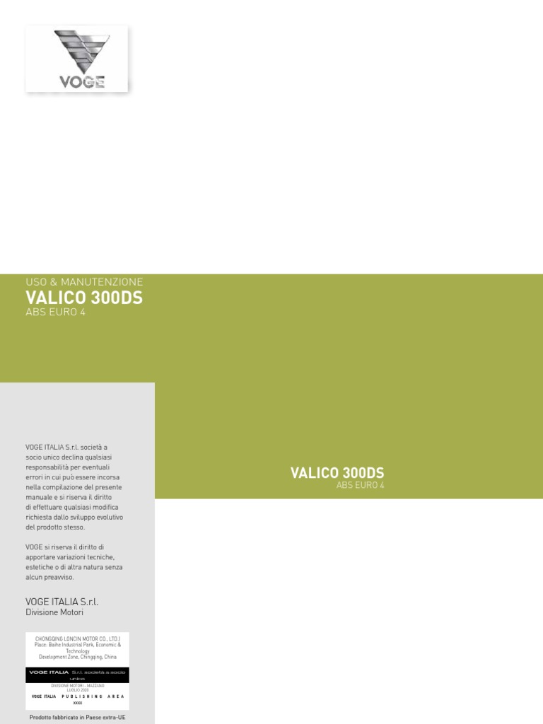 ricambi originali VOGE. Per tutte le informazioni in merito alla garanzia del suo VALICO 300DS la invitiamo a leggere con cura il