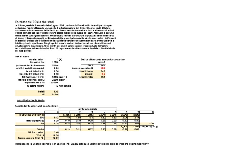 Domanda: se la Cygnus operasse con un rapporto D/E più alto quali valori usati dal modello dovrebbero essere modificati?