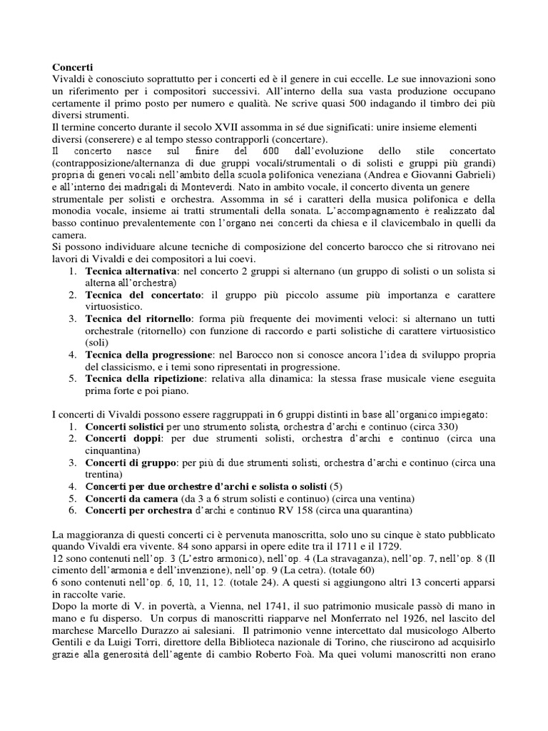 Vivaldi è conosciuto soprattutto per i concerti ed è il genere in cui eccelle. Le sue innovazioni sono
