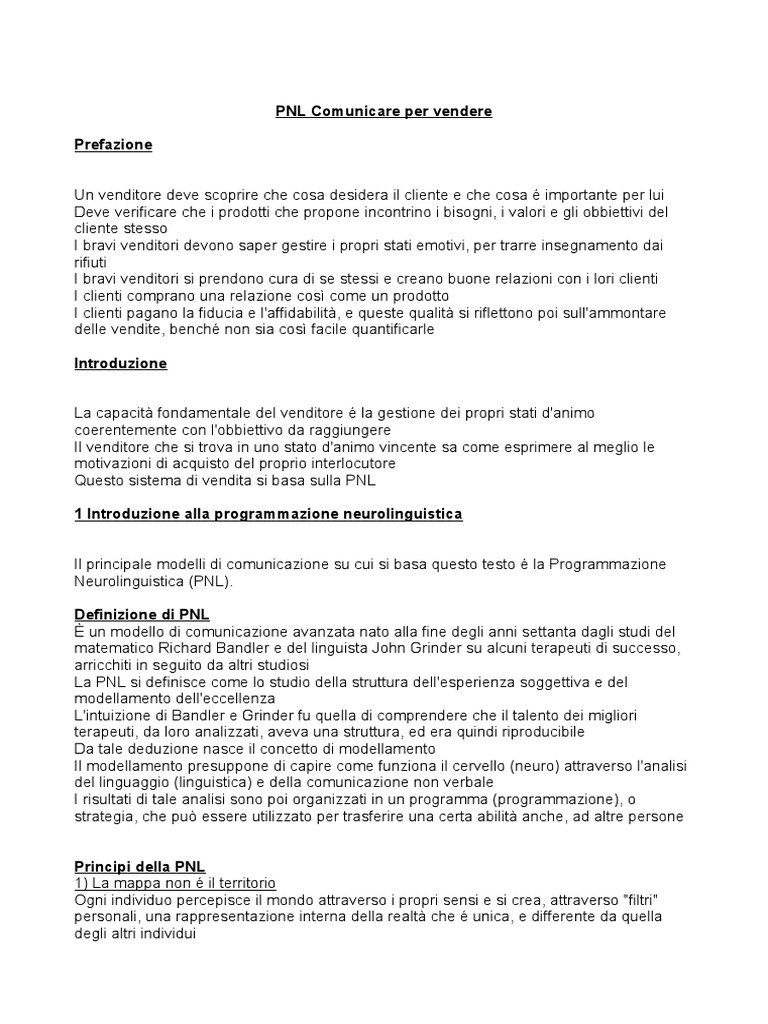 Il venditore che applica i principi della PNL si sforza invece di "dimenticarsi",