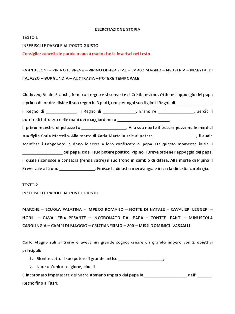 ESERCITAZIONE STORIA